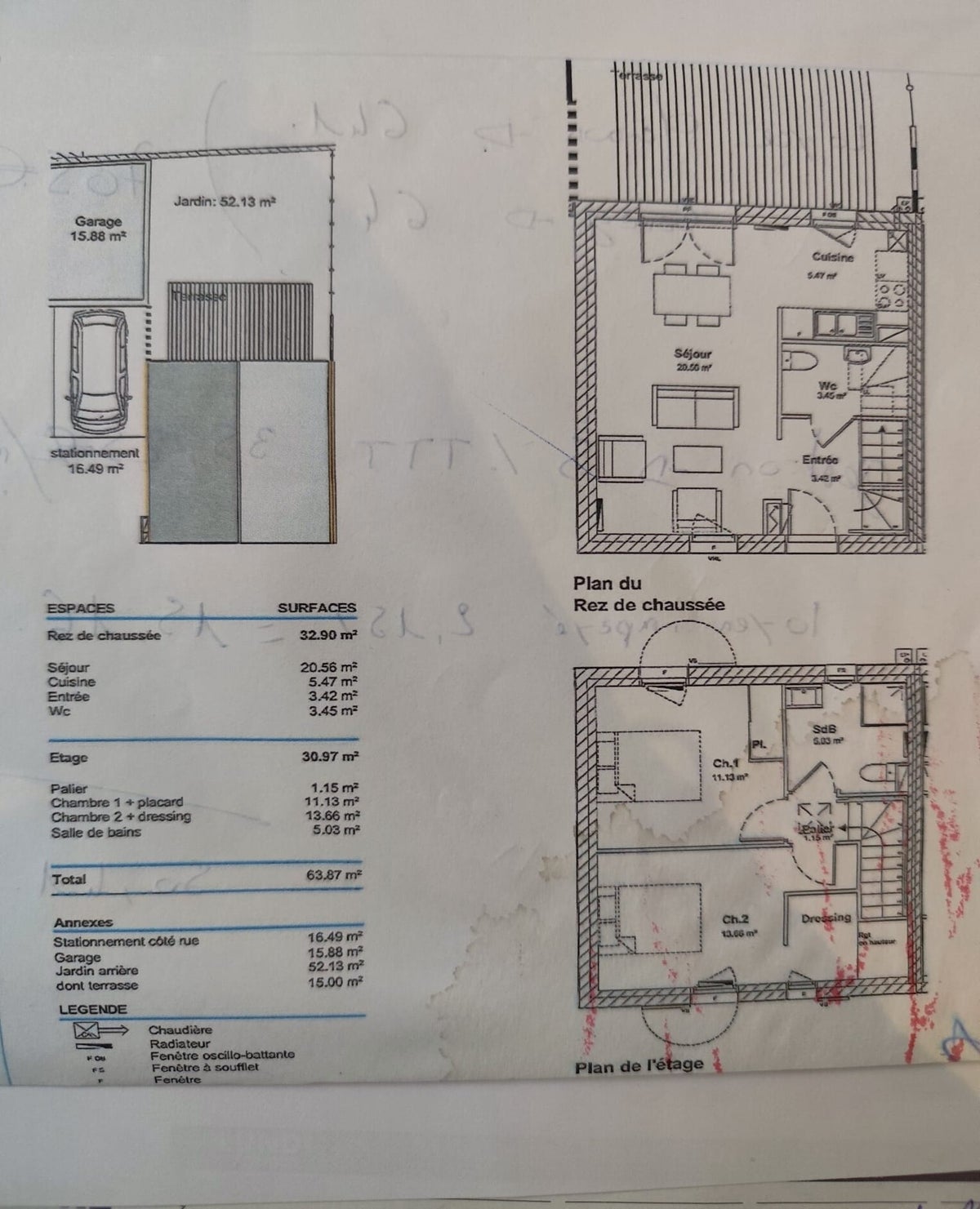 Maison de 3 pièces de 63.87m² avec jardin et terrasse comprenant :